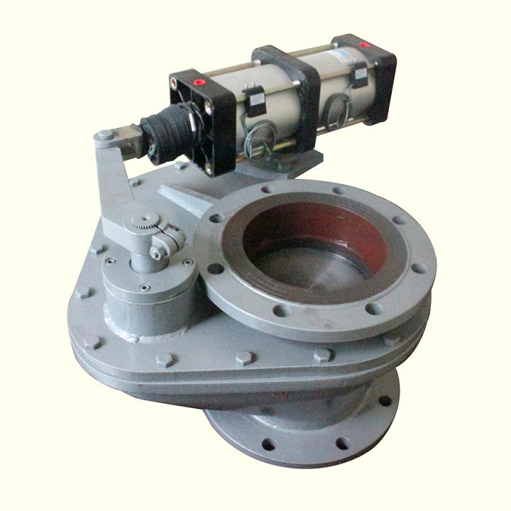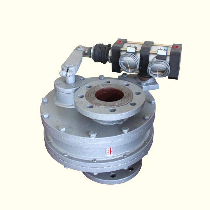 本阀门通过旋转轴带动阀板运动,使得阀门开关动作时的运动力为旋转运动。气动执行机构的活塞杆、密封填料不与介质直接接触,大大延长了气动执行机构的使用寿命。同时设计很好的解决了同类阀门轴密封处物料外漏的情况。阀体采用精密铸钢件,密封填料采用耐磨耐高温氟橡胶密封件,阀板与阀座间密封面采用耐磨硬质合金材料或耐磨增韧结构陶瓷,表面光滑,硬度可达60~70HRC,解决了密封面因物料冲刷而易被冲蚀、寿命不高的问题,使用寿命比普通材料阀门长5-10倍,为用户带来好的使用效果和经济效益,大大提高了设备运行的安全性、稳定性。